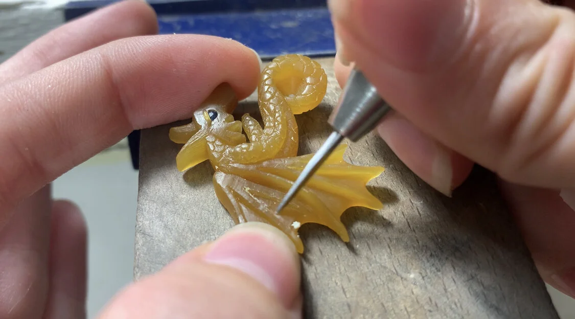 Certain pieces of jewelry require me to carve out a wax model by hand. This is mostly done for organic shaped pieces. From there, you can approve the model and then I will cast it in the metal desired.